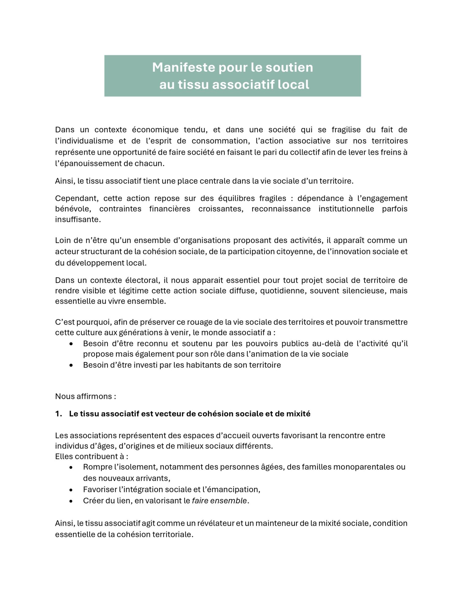 Manifeste pour le soutien au tissu associatif local