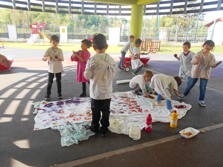 Ces vacances peuvent se résumer en quelques mots : « Expérimentation artistique ». Ils ont peint « A la manière de » … Pollock, Kandinsky, Picasso, Keith Haring et d’autres encore ! Ils se sont essayés au graff, au light painting, au Land’art… Un vrai bonheur pour les yeux ! »