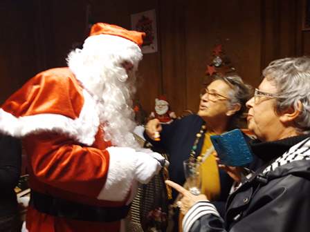 Près d’une centaine de personnes, adhérents ou non, se sont régalées et de nombreux éclats de rires ont résonné. Des visites exceptionnelles ont ponctué ce moment très festif. Monsieur Le Maire nous a fait l’honneur de venir trinquer et échanger quelques mots. Puis, avant d’entamer sa longue tournée, le Père Noël en personne est apparu pour distribuer des bonbons et poser avec chacun pour des photos souvenirs.