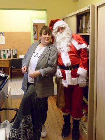 En ce Jeudi 19 Décembre 2019, tels de parfaits petits lutins, dès 8h30 quelques salariés s’affairent. Certains sont en cuisine pour tartiner, mitonner, préparer gourmandises salées et sucrées qui garniront le copieux buffet du soir. Le traditionnel sapin tout de blanc et rouge vêtu est dressé par Ludivine pour attendre les convives; Jany assortit les nappes et le décor du foyer.